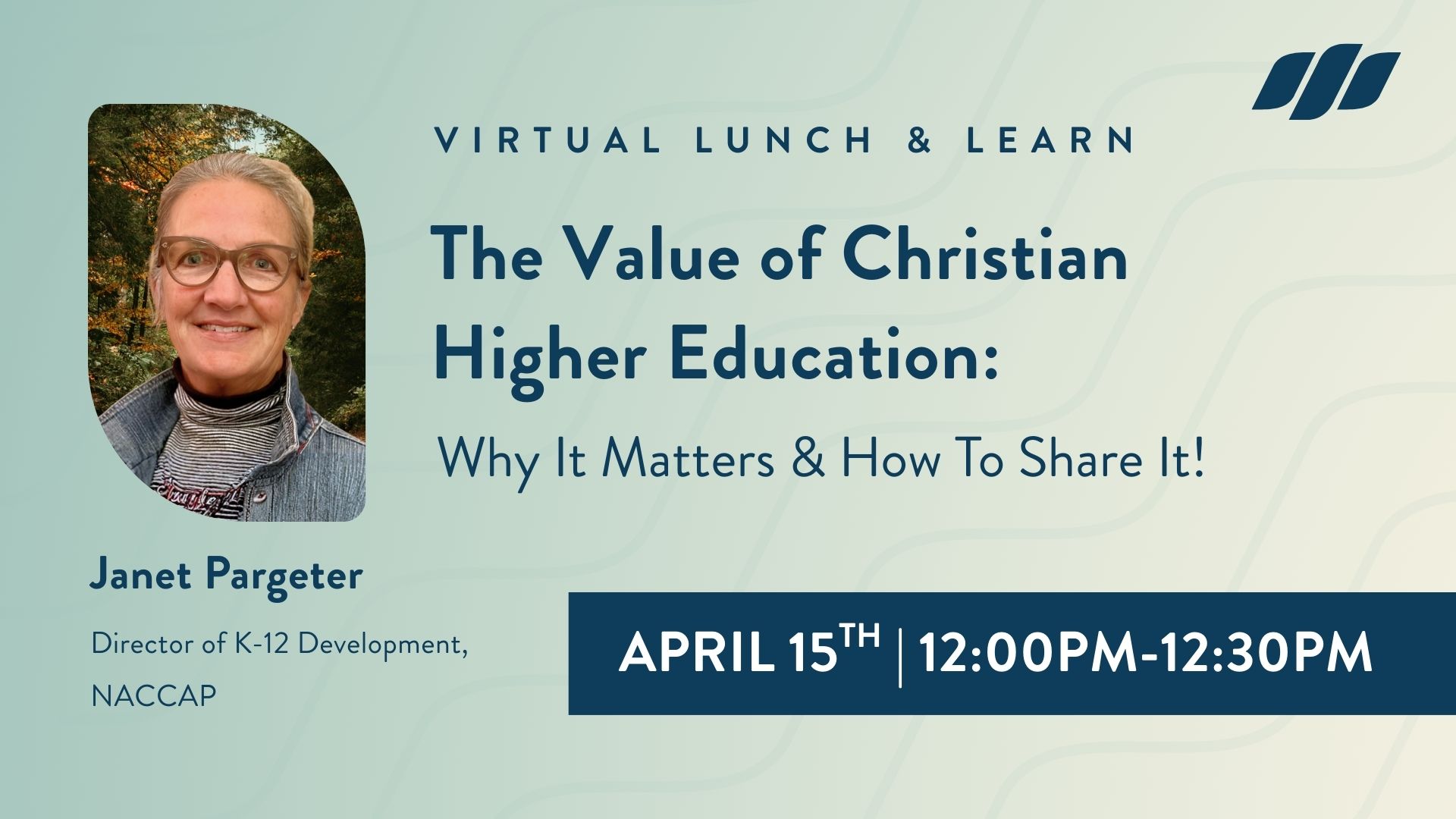 Led by Janet Pargeter (NACCAP), this virtual session will highlight the heart of Christian higher education and explore how we can thoughtfully, honestly, and consistently share its value with students and families.